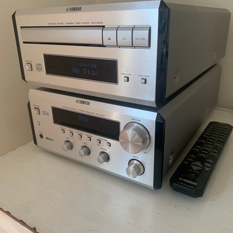 Yamaha stereoanläggning med dvd-spelare och högtalare silver svart