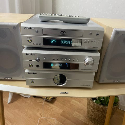 Yamaha stereoanläggning med dvd-spelare och två högtalare (en på bild men finns två likadana).