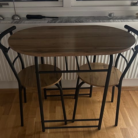 Hej! Säljer nu min matgrupp. Bordet är cirka 150lång och cirka 130 brett. Stolar ingår självklart,bordet är jätte fint,vissa skruvar behövs bara skruvas åt litegrann.