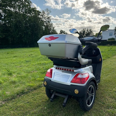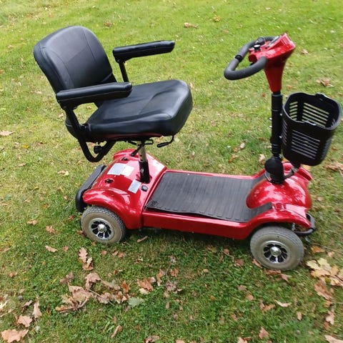 Nu är det dags att sälja min älskade terrängrullator, ett helt outstanding hjälpmedel för dig som har svårt att gå men vill komma ut i skog och mark. Tack vare det unika hjulet fram klarar den av mindre stenar, rötter, ojämn terräng samt trottoarkanter. Höj och sänkbart styre samt utdragbart säte. Handbromsar.
