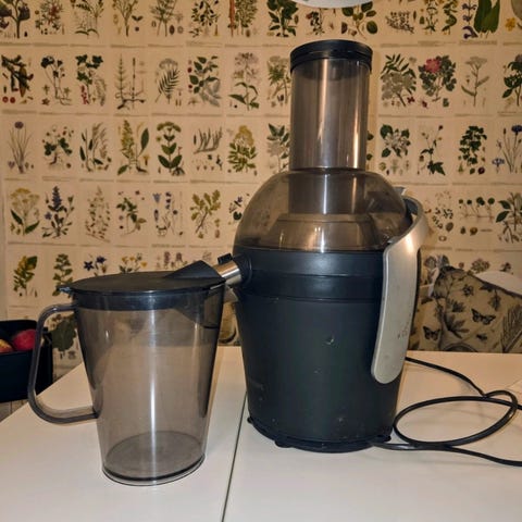 Säljes då den inte används, bra skick sparsamt använd. Råsaftcentrifug för frukt och grönsaker