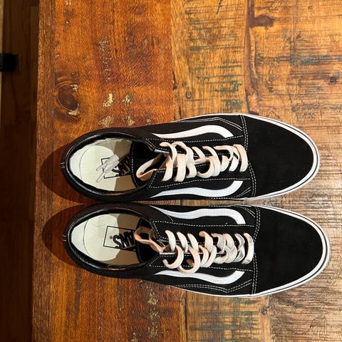 Vans Old Skool sneakers i storlek 40. Modellen är lågskaftad med snörning. Skorna är svartvita med vit sula och vit sidostripe. Ovandel i textil och mockaliknande material, yttersula i gummi.