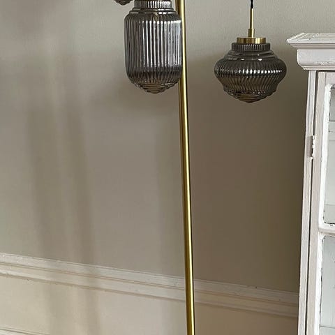 Superfin antik golvlampa säljes pga flytt. Lampskärm ingår.