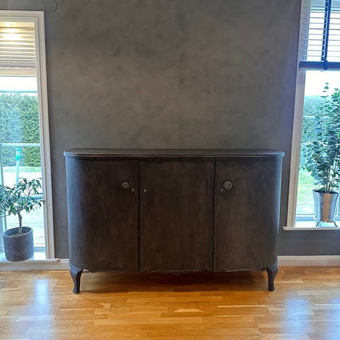 Målat mattsvart med chalk Paint Annie Sloen och vaxat därefter.
