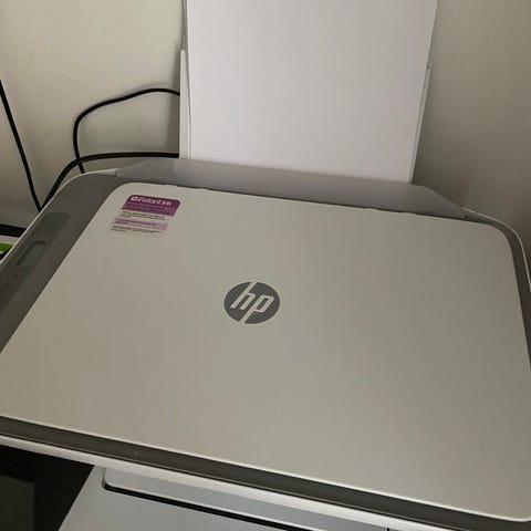 Multifunktionsskrivare i mycket gott skick, perfekt för hemmabruk eller ett litet kontor. Den kan skriva ut, kopiera och skanna, och kan anslutas trådlöst via Wi-Fi eller med USB-kabel.