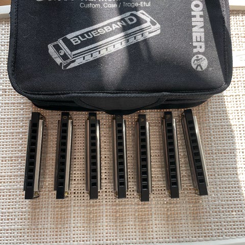 Hohner trä med blått el orange fodral