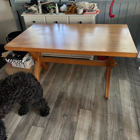 Antikt träbord med stolar
