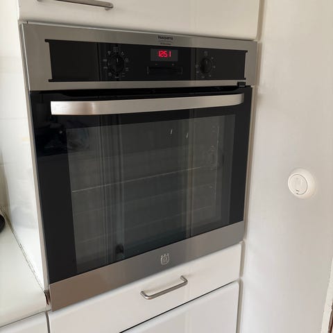 Husqvarna induktionsspis med glaskeramisk häll och inbyggd ugn 2017. Hällen har flera induktionszoner med markerade kokzoner och touchpanel framtill. Ugnen är elektrisk med ugnsgaller och plåtar samt glaslucka. Spisen är fristående och ansluts med elkabel enligt bild. Passar för installation i kök där man önskar induktionshäll och ugn i en och samma enhet.