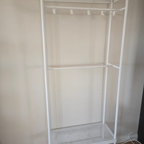 Klädhängare med skoförvaring, metall, vit, 78x32x200 cm, som ny.