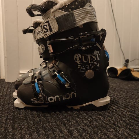 Salomon Quest Pro 100 W, en högpresterande hybridpjäxa för damer som kombinerar kraft för utförsåkning med funktioner för kortare vandringsturer.