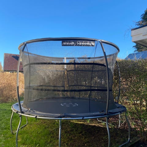 Fin studsmatta i bra skick. Många års hoppande kvar. 2 m diameter, maxvikt 60 kg totalt.