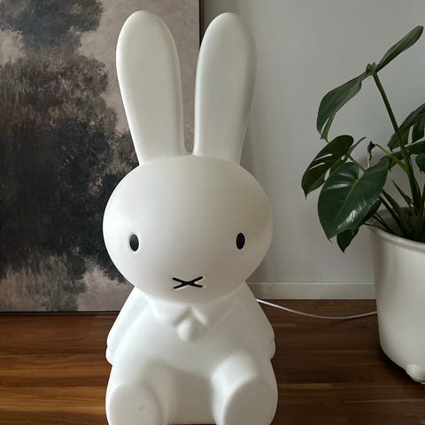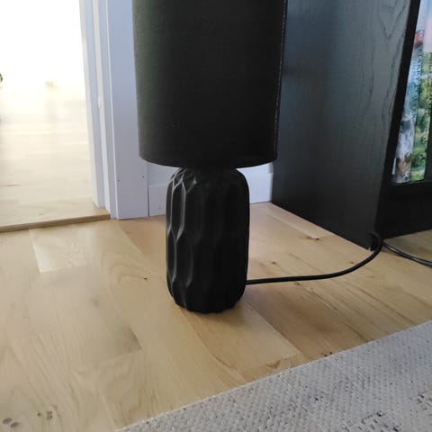 Lampa i porslin med ett mjukt, fint ljus som lyser igenom det vita porslinet.