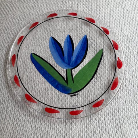 Fint fat designat av Ulrica Hedman Vallien. Signatur finns vid bladen. Passar som dekoration eller serveringsfat. Mått 33 cm. Litet slitage i färgen finns - se bilder!