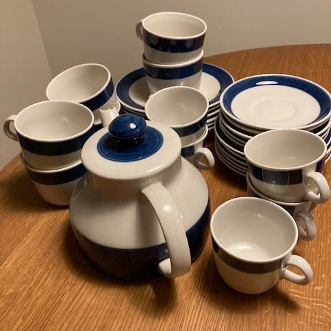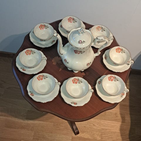 Vintage teservis ”Poesie” från Lorenz Hutschenreuther, Tyskland. Med guldmotiv.