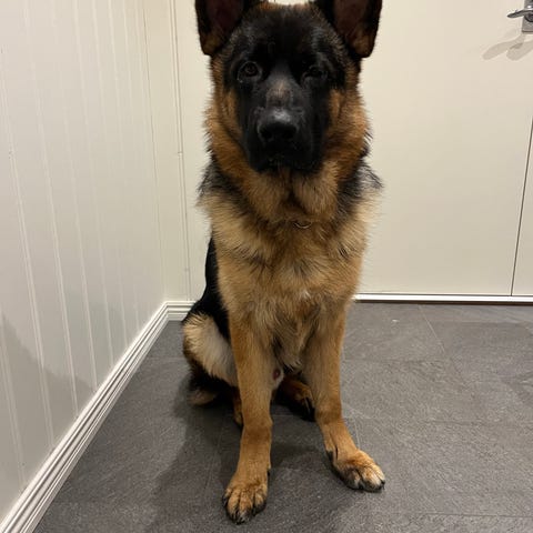 Hane född 240105 söker ett nytt hem. Båda föräldrarna är renrasiga schäfrar, men han har inte blivit registrerad och har därför inte stamtavla. Han är social och älskar människor. Han har inte problem med andra hundar (katt har vi inte provat). Han gillar att träna spår, nosework och lydnad.