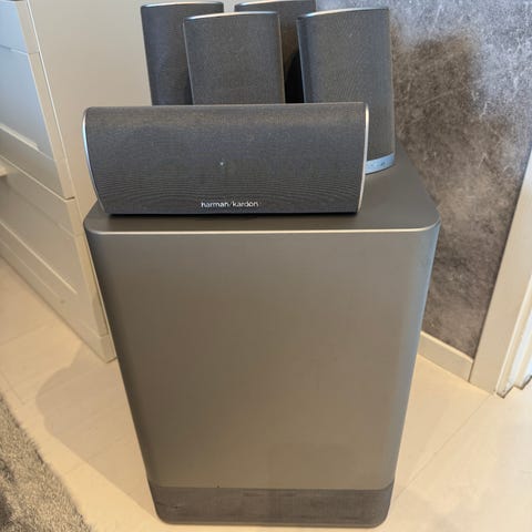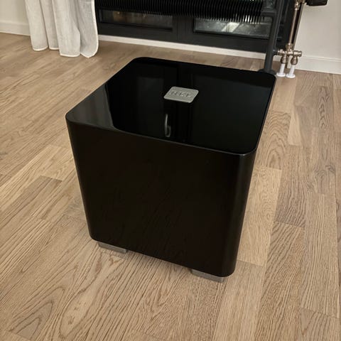 Harman Kardon subwoofer i svart utförande. Aktiv bashögtalare med inbyggd förstärkare och bakre anslutningspanel med linjeingångar (RCA) och högnivåhögtalarterminaler. Justerbara reglage för nivå, fas och strömläge finns på baksidan. Passar som basförstärkning i hembio- eller stereosystem.