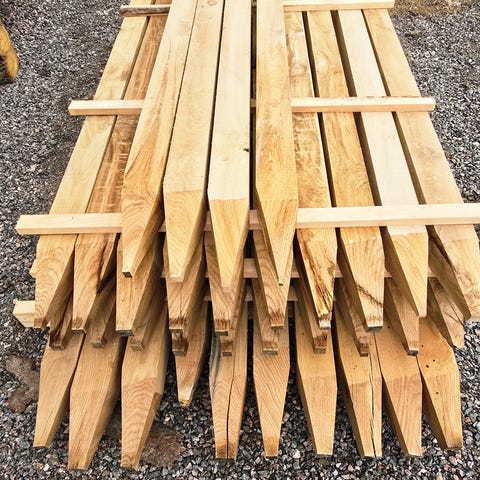 Spillvirke av ek trâ i olika lângder åbredder, samlat i en hâck . Brâdera â osorterade å kan innehålle både barkkant och sågade yter. Lgâmpligt sôm råmaterial fôr snickeri