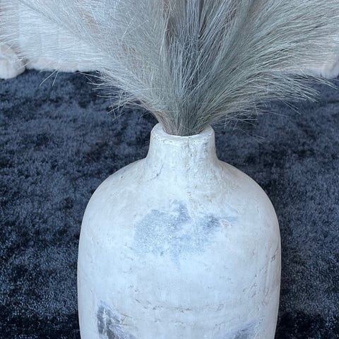 Mio vas i beige färg. Cylindrisk form med smalare öppning upptill. Passar som inredningsdetalj för exempelvis torkade blommor eller som fristående dekoration i hemmet.
