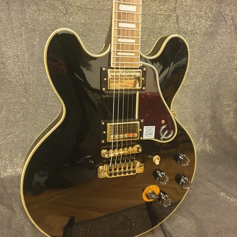 Gitarren är i nyskick, spelar perfekt och har den klassiska ES-335-känslan: varm ton, bra sustain och riktigt trevlig spelbarhet.