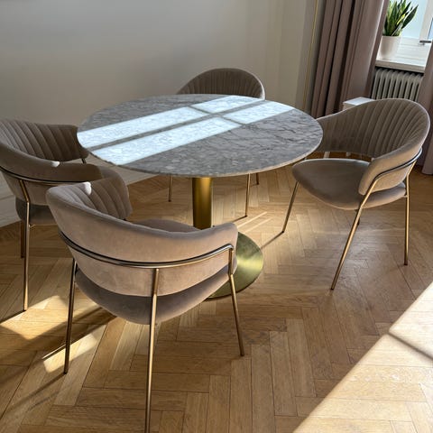 Eleganta Kiwi-stolar i sammet & mässingfärg från Mio