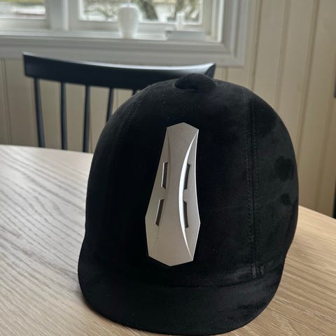 CRW ridhjälm i svart med ljusa ventilationsdetaljer. Hjälmen har skärm framtill, justerbart hakband och vadderad insida för ökad komfort. Stl.56