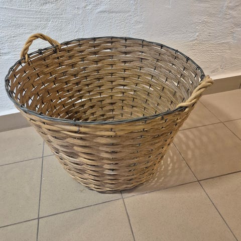 Grön lövkorg med två handtag.