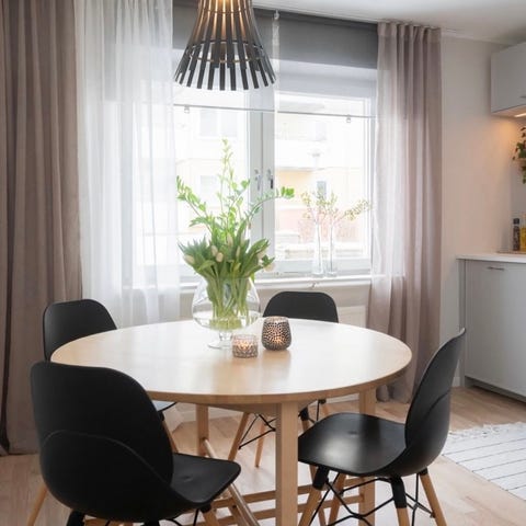 Plats for 4 personer runt, upp till 6-8 personer utdraget.