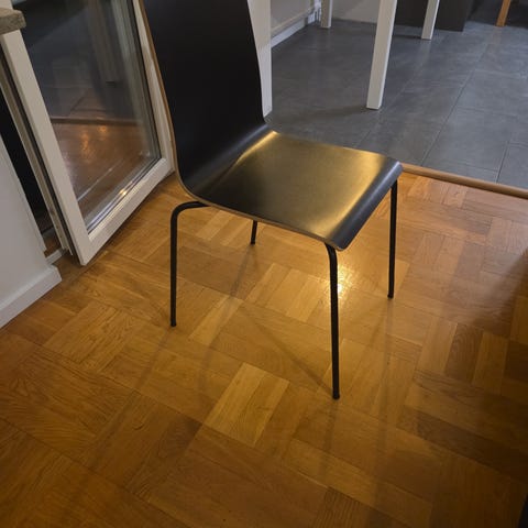 Säljer ett set om 6 st IKEA GILBERT‑stolar i svartbetsad fanér med kromade stålben, utgången modell och finns inte i IKEA sortimentet längre. Stilrena, stapelbara och väldigt lätta att passa in i de flesta hem – perfekta till både kök och matrum.