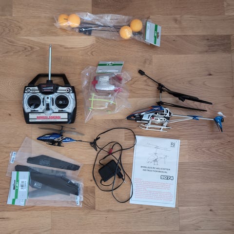 Sändaren är avsedd för styrning av radiostyrda modeller, exempelvis flygplan eller andra modellfordon. I förpackningen ingår fjärrkontroll, laddare och tillbehörsfack i formgjuten insats. Bruksanvisning på engelska medföljer.