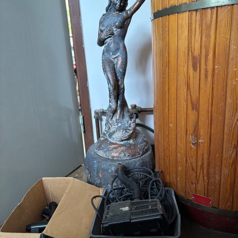Litten jungfru med 3 vattenutkast och pump