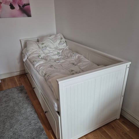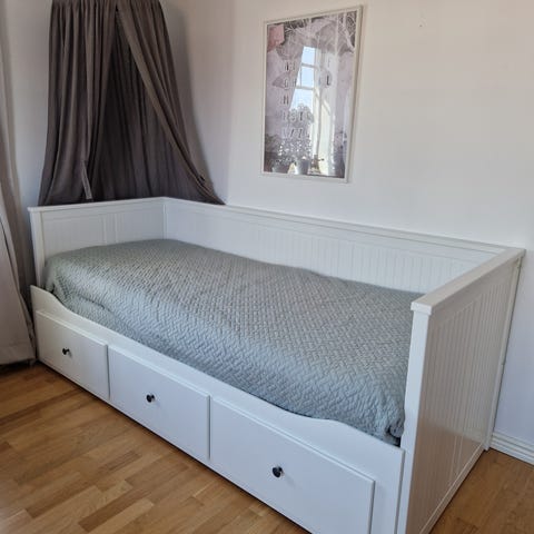 Praktisk och snygg dagbädd med bra förvaring och möjlighet att dra ut till en dubbelsäng. Perfekt i barnrummet eller gästrummet.