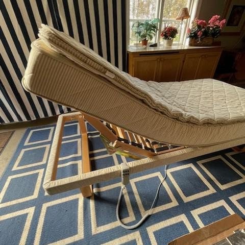 Carpe Diem Beds ställbar säng. Sängen har elektrisk ställbar funktion med motor och styrbox monterad i sängbotten. Träram i botten och bäddmadrass.