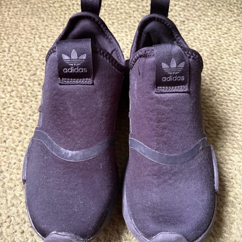 Marinblå med vit sula och snörning framtill. Ovandelen är i textil/mesh med syntetdetaljer och de klassiska tre ränderna på sidorna.