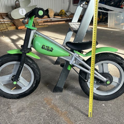 Perfekt första cykel, barnet kan springa fram och hålla balansen när det fått lite fart. Märke Mini. Tillverkad tyskland. Skickas ej.