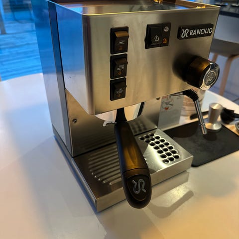 Rancilio Silvia är en mycket robust semiprofessionell espressomaskin i rostfritt stål med 58 mm portafilter, samma standard som används i caféer. Maskinen är känd för sin hållbarhet och används ofta av kaffeentusiaster hemma.