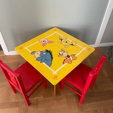 IKEA barnmöbelset bord och pallar trä motiv katt och hund