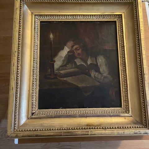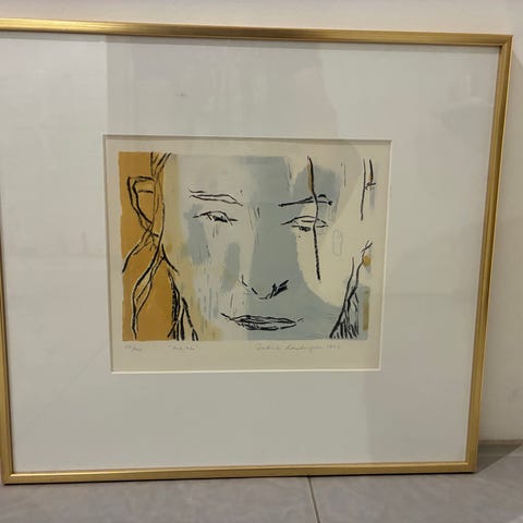 Tavla i form av en oljemålning på duk, 62x96cm,föreställande en liggande nakenmodell. A. Modigliani (efter)Målningen är rektangulär och monterad i en profilerad träram med guldfärgad innerkant. Baksidan visar duk uppspänd på kilram i trä med upphängningsvajer. Passar som väggdekoration i exempelvis vardagsrum, sovrum eller ateljé.