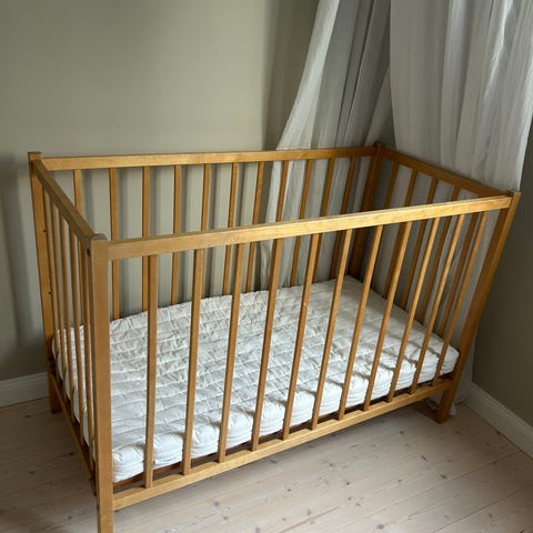 IKEA spjälsäng i gott skick med några små repor efter många års användning, men inget som påverkar funktionen. Madrass kan ingå om man önskar (rök- och djurfritthem). Mått finns med på sista bilden. Finns att hämta i Bandhagen.