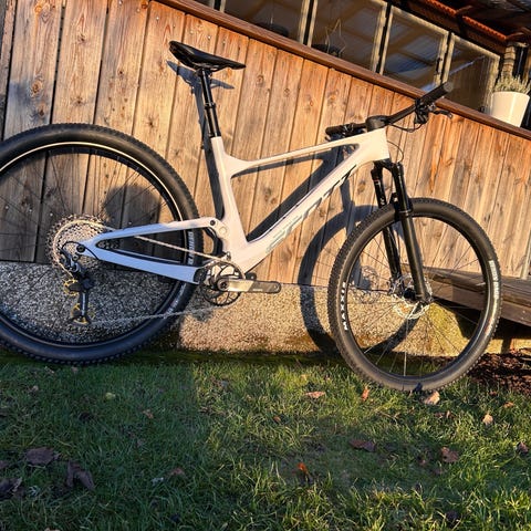 Scott mountainbike för unisex med ramstorlek M och 29-tums hjul. Cykeln är avsedd för terräng- och stigcykling. Storleken M passar normalt personer av medellängd, men exakt passform beror på kroppslängd och preferenser. 29-tums hjul ger god rullförmåga över ojämnt underlag och är vanligt på moderna mountainbikes. Modellen är utrustad med dämpad framgaffel och bakdämpare, vilket ger bättre kontroll och komfort vid körning i skog och på tekniska stigar.