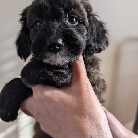Vi är 75% pudel och 25% pomeranian.