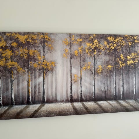 Säljer en snygg och dekorativ canvas-tavla med motiv av en hängbro i grönskande skog. Tavlan ger ett lugnt och naturligt intryck och passar bra i vardagsrum, sovrum eller kontor.