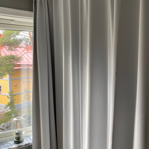 IKEA gardiner i beige färg. Mörkläggningsgardinerna.