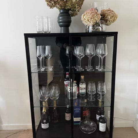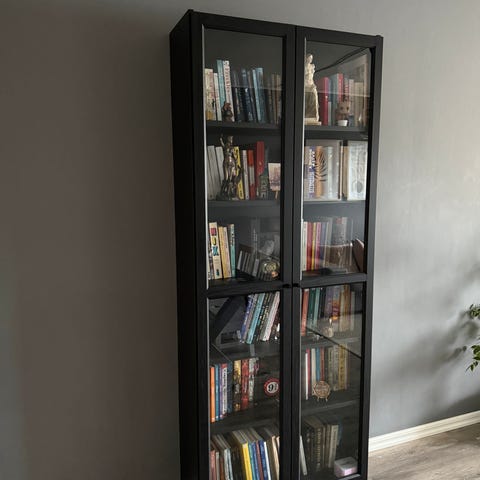 Länk till IKEA: https://www.ikea.com/se/sv/p/billy-oxberg-bokhylla-med-glasdoerrar-svart-ekmoenstrad-s59483317/#content