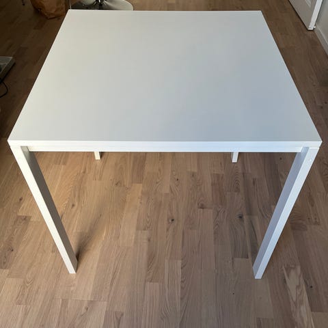 Vitt matbord från Ikea med metallben. Varsamt använd.
