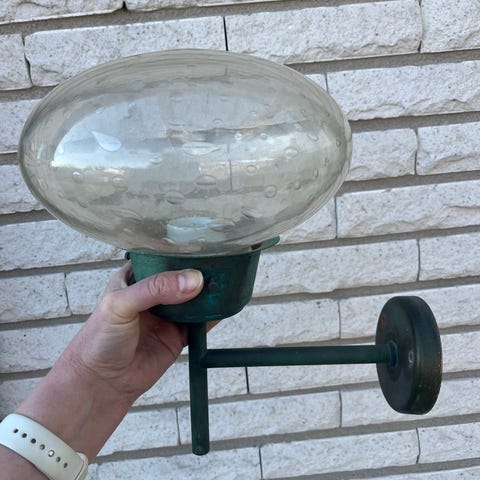• En rund utelampa i mässing – fungeraande med el-status okänd