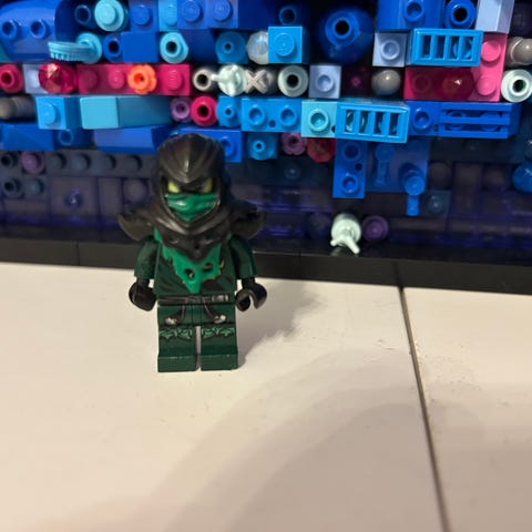 Morro minifigur med tillbehör. Inkluderar Morro-figuren, svart lie-vapen, grön spök-effekt, rustningsdel och svart displayplatta. Figuren är i bra skick med tydligt tryck och stabila delar.