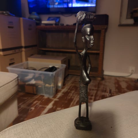 Mycket välgjord och detaljrik träfigur i mycket vacker trä. Sannolikt afrikansk. Ok med bud.