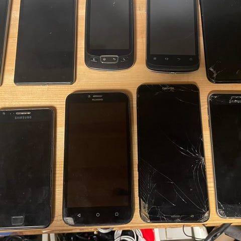 11 st gamla mobiltelefoner bl a Samsung, Iphone, Nokia, Doro, Sony Ericsson.
