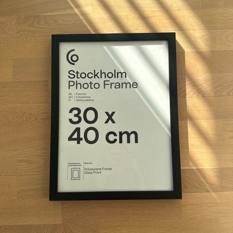 Rusta fotoram i storlek 30x40 cm i brun färg. Ramen har vit passepartout och glasfront. Baksidan är försedd med upphängningsbeslag för montering på vägg i stående eller liggande format. Passar för foton, affischer eller andra tryck i format 30x40 cm eller mindre vid användning av passepartout.