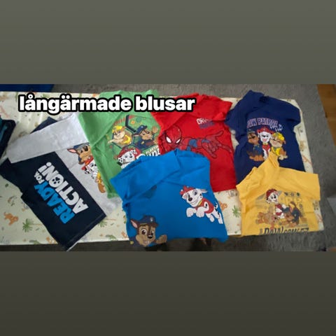 Kortärmade blusar för pojkar, storlek 104. Mycket gott skick. Massor av sagomotiv. Vackra färger för vår och sommar. Inköpta i Polen.